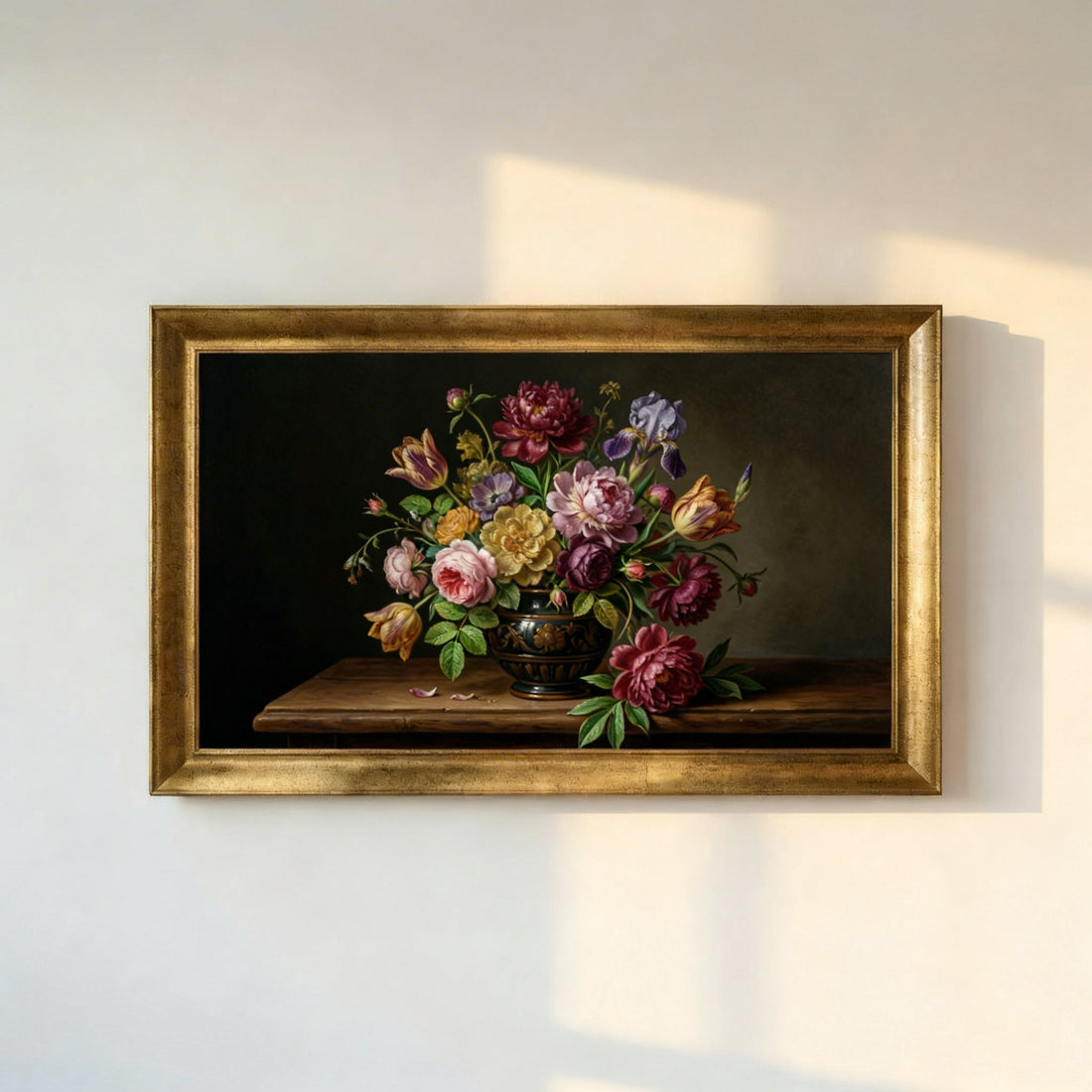 Klasik sanat estetiğini yansıtan bu zarif çiçek tablosu, zengin renkleri ve detaylı kompozisyonuyla yaşam alanlarınıza...