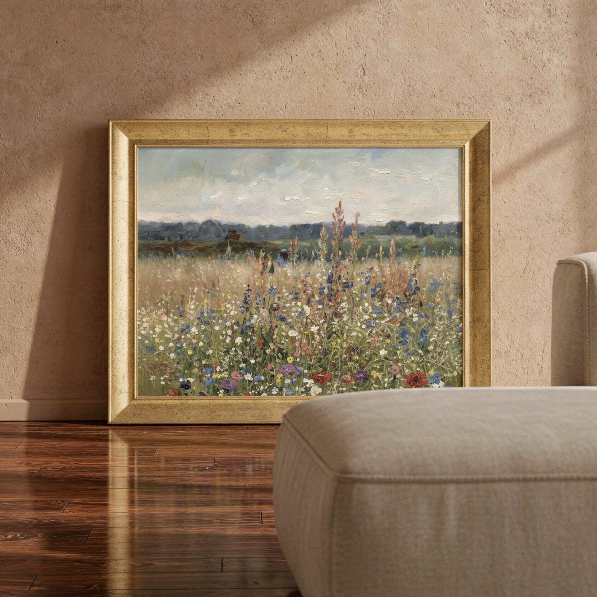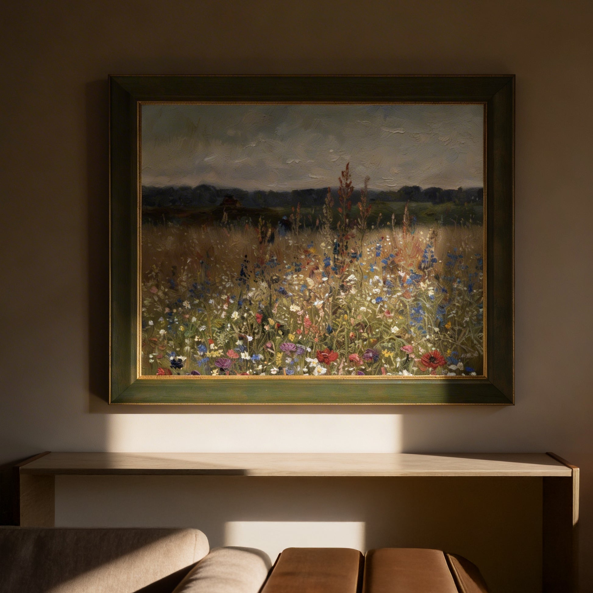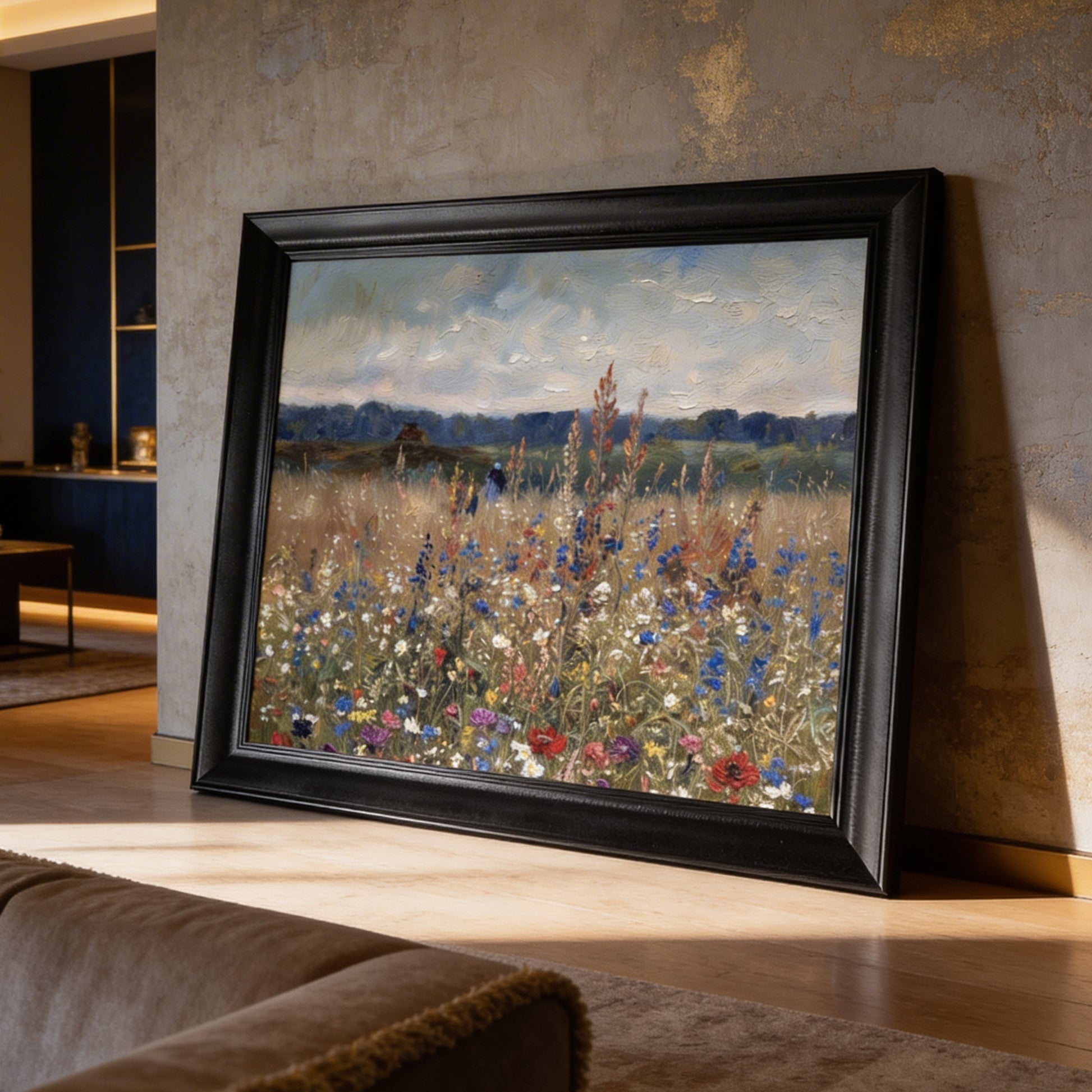 Bir manzara tablosundan çok daha fazlası... Flowers Landscape, doğanın vahşi güzelliğini ve floral dokuları sanatsal bir derinlikle buluşturuyor. Her fırça darbesinde (veya detayda) çiçeklerin rüzgarla dansını hissedeceğiniz bu eser, mekanınıza karakter katacak.